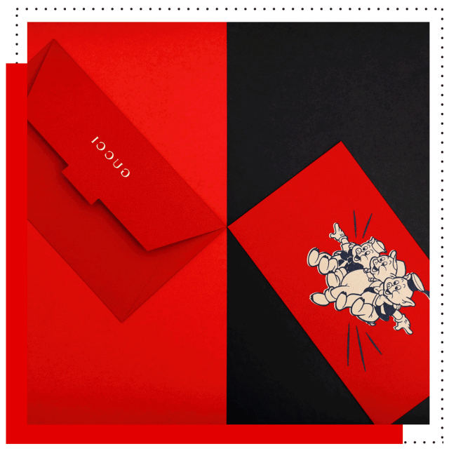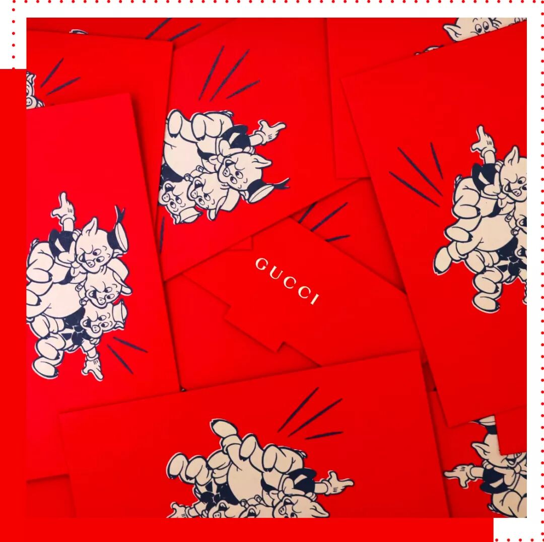 如果你的年终奖不太够,又很想要这只Gucci猪,我们倒是可以送出印有这几只Gucci猪的新春红包给你噢![]()