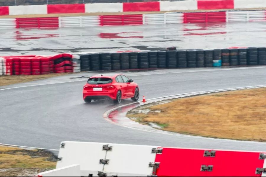 正确的驾驶方式是将脚跟死死顶在地板以拿捏最精准的油门开度,根据弯的大小选择最合适的过弯策略。所以在第二圈的体验中,我稍稍放慢了脚步,车身在失控与可控之间游走,重心的转移配合方向的转动使得轮胎的抓地力在极限的边缘徘徊,相比于传统紧凑级车,我能感受到福克斯ST-Line的过弯极限很高,看来它确实需要一位经验十足的赛车手去驾驭,而且它的改装潜力很大,难怪福克斯能在房车锦标赛中取得好成绩。