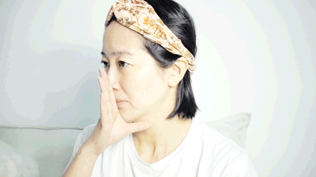另一个按摩手法是我最最最喜欢的,针对脸部紧致的。同样,先取适量按摩膏均匀涂在下巴和脖子,然后用双手拇指&食指的侧面把脸颊往耳后方向上推,紧接着再顺着耳朵往淋巴方向慢慢压下来,像这样