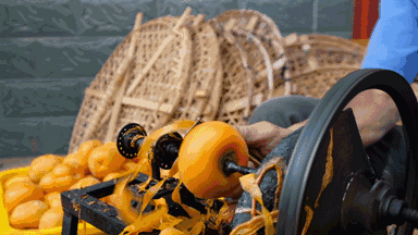 摘下的柿子要经过果农们的精挑细选,选择没有病斑、虫眼、成熟度一致的柿子。柿皮不能吃,选好的柿子还要用刮刀刮掉外皮。