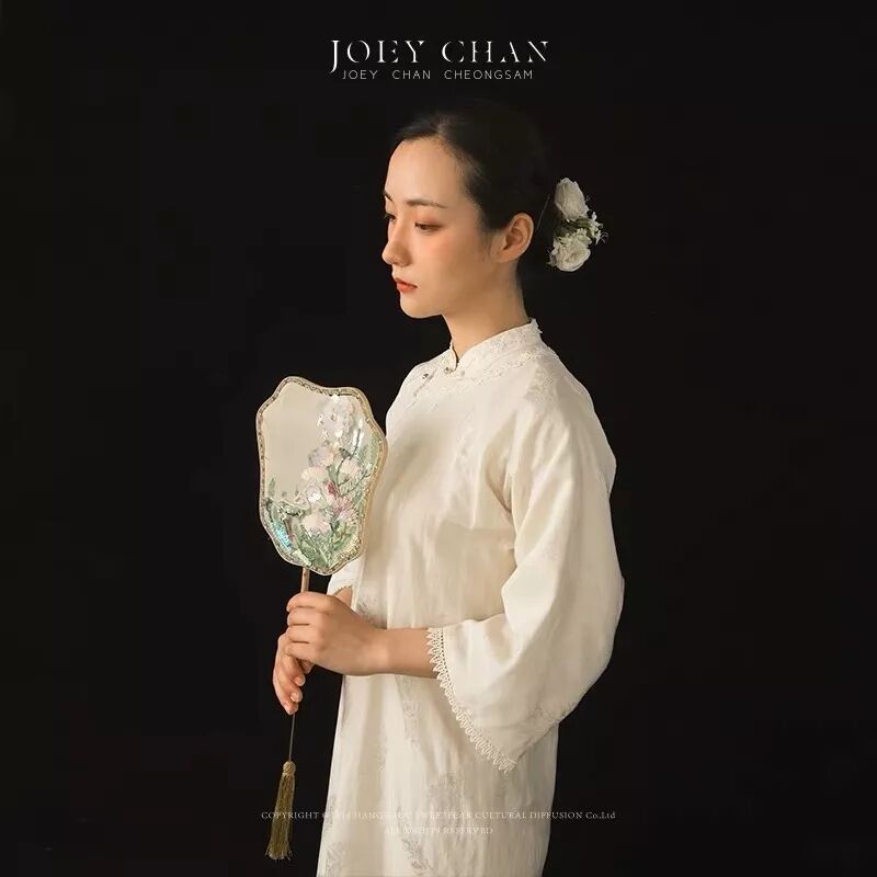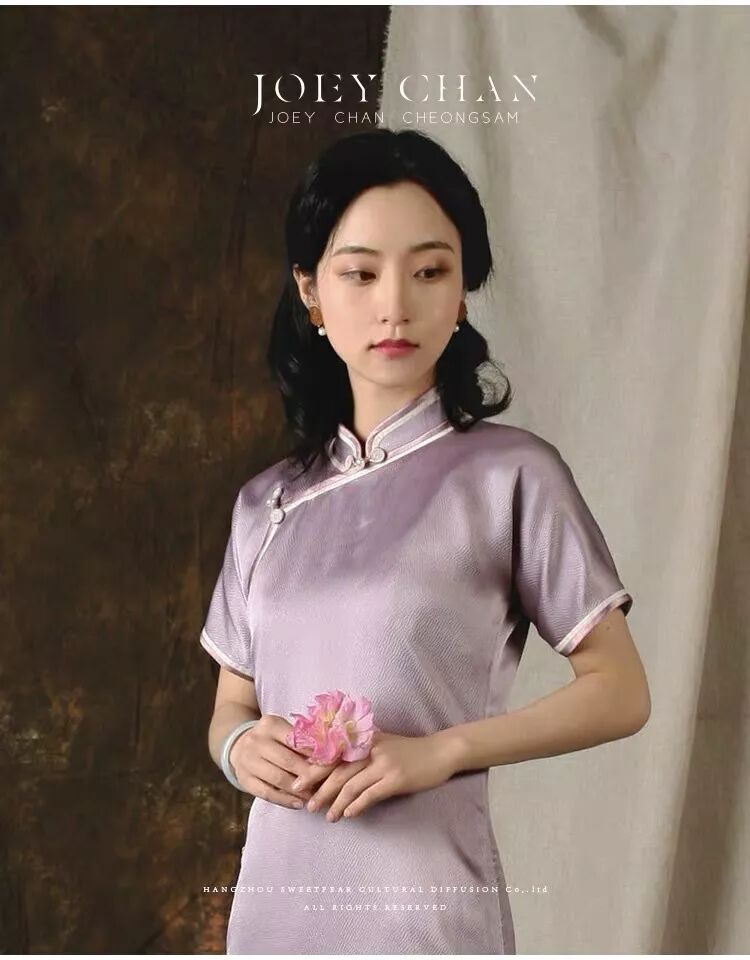 这些旗袍的名字也起得相当有书卷气息:绿萼、与君、叶萋、禾紫、可樱、堇夕、方度、诉歆……妥妥的张爱玲小说里女主角的名字。