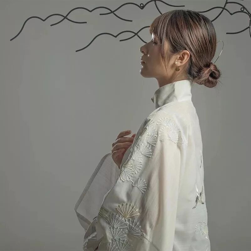 宴山亭家的衣服走两个极端,一种是超时髦的日常汉服,与阔腿裤混搭毫无违和感。
