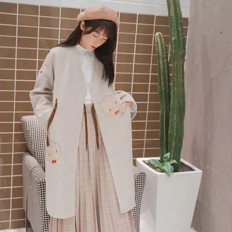 做工质感与美貌并存,细节做得很棒,领口立体刺绣、盘扣都很用心,价格也稍贵一些。