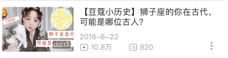 后来出的视频主题也超好玩,什么星座系列、用“谷阿莫”的形式讲历史之类的,就关注了她,后来才了解这姑娘原来是有淘宝店买汉服的。