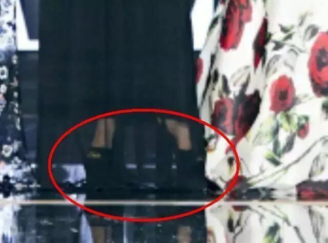 对,虽然合照被长裙遮住,可是走路一秒破功。