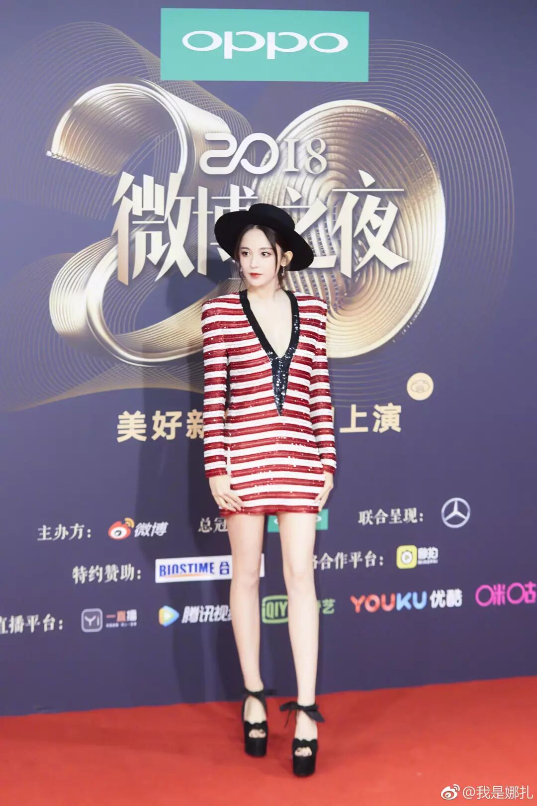 娜扎的鞋可以说是最显眼了,明明官方身高172cm的她还踩着超高防水台!