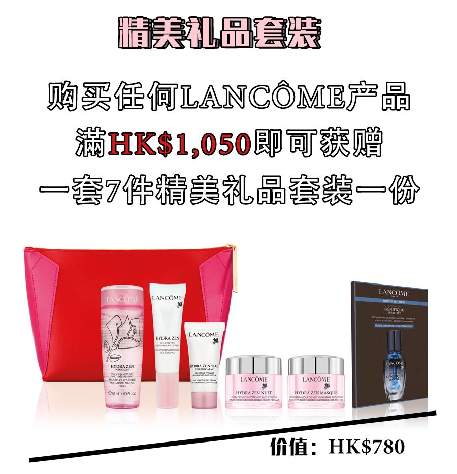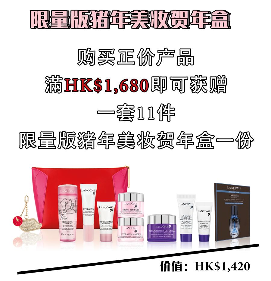新年礼遇:购买正价产品满HK$500 即可获赠兰蔻新年利是封一套。
