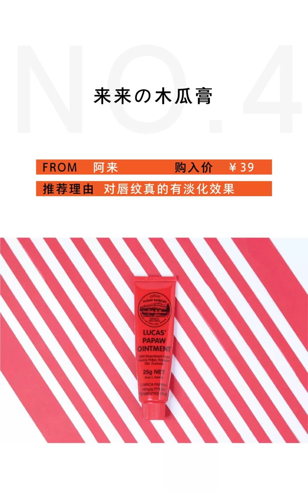 我认为冬天人手一只的单品就是木瓜膏了,我自己用它来当护唇膏用,长时间下来发现它真的对我的唇纹有很大的改善效果。