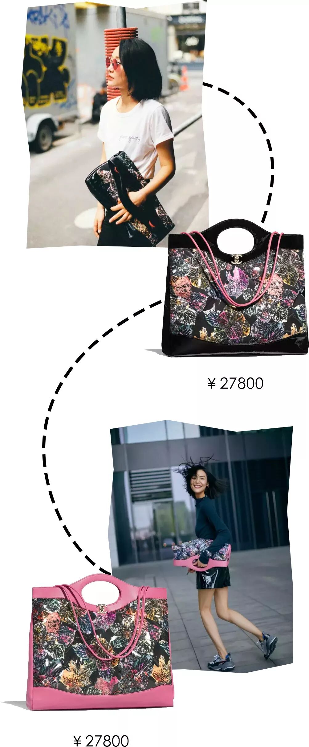不过我个人觉得,周公子和刘雯上身的印花款也是hin!好!看!满包的枯叶印花尽显法式浪漫