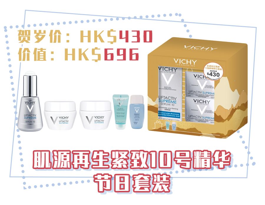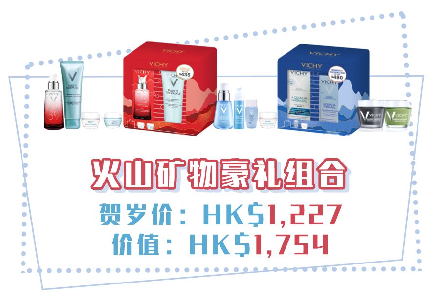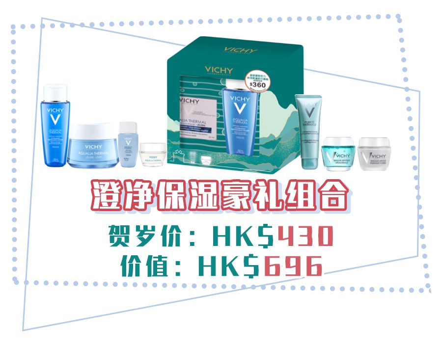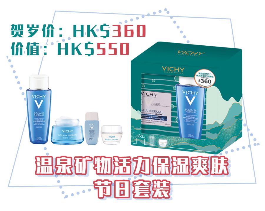 `贺岁价之产品内容包括限定套装内之产品,以及会员以积分兑换之指定礼品。会员需于选购指定套装期间,同时即场以会员积分兑换指定礼品,方可以优惠价享有全数产品。此优惠仅适用于薇姿屯门市广场、上水广场、朗豪坊、荃湾广场、Popcorn专门店、及尖沙咀崇光百货、永安九龙中心、永安中心专柜。