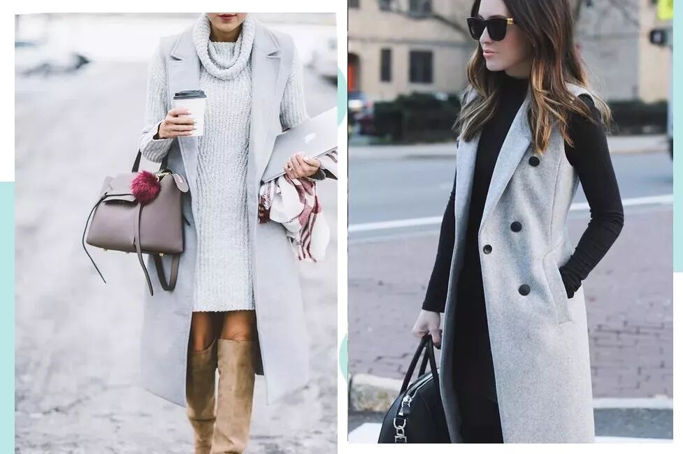 厌倦了连衣裙与长大衣的搭配,你还可以选择搭配背心外套,特别冷的天气,可以尝试羽绒背心or皮草。