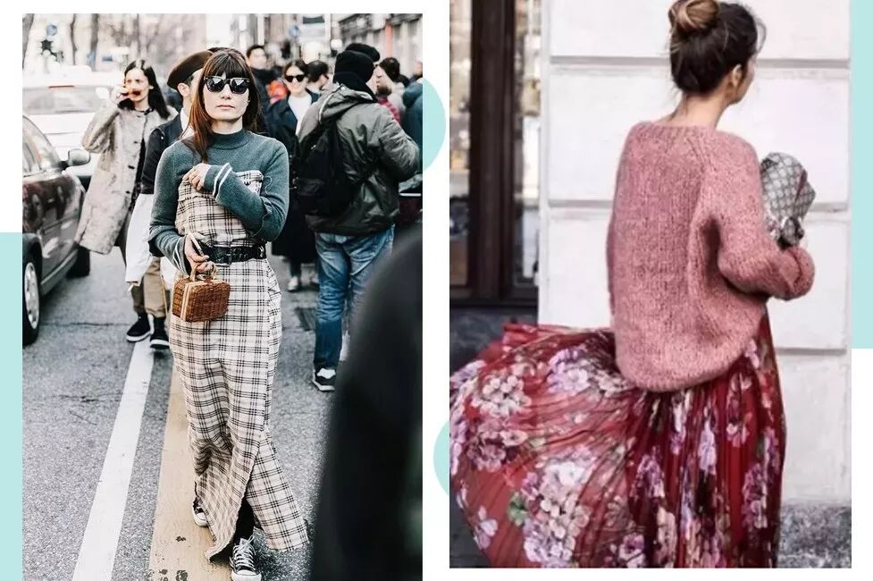毛衣与连衣裙简直有种天生一对的既视感。不同质感的混搭碰撞,让你分分钟美成仙女儿。