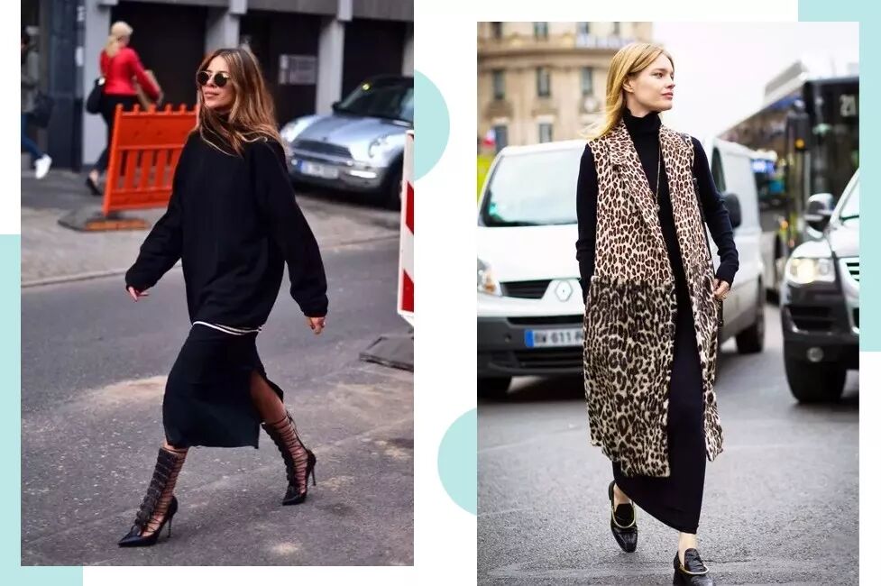 如果你懒得想搭配,试试用开叉外搭短款毛衣、夹克或牛仔衣;或者试试西装或者街头运动的单品,营造混搭feel。