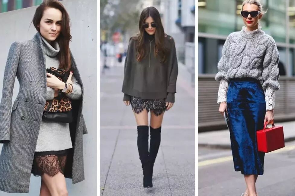 丝绒裙子的时尚地位不容小觑,它自带的贵妇气质,特别适合轻熟装扮,华丽又不造作;而代表着性感与女人味的蕾丝裙则是女神标配,就算是冬天也不能放弃。