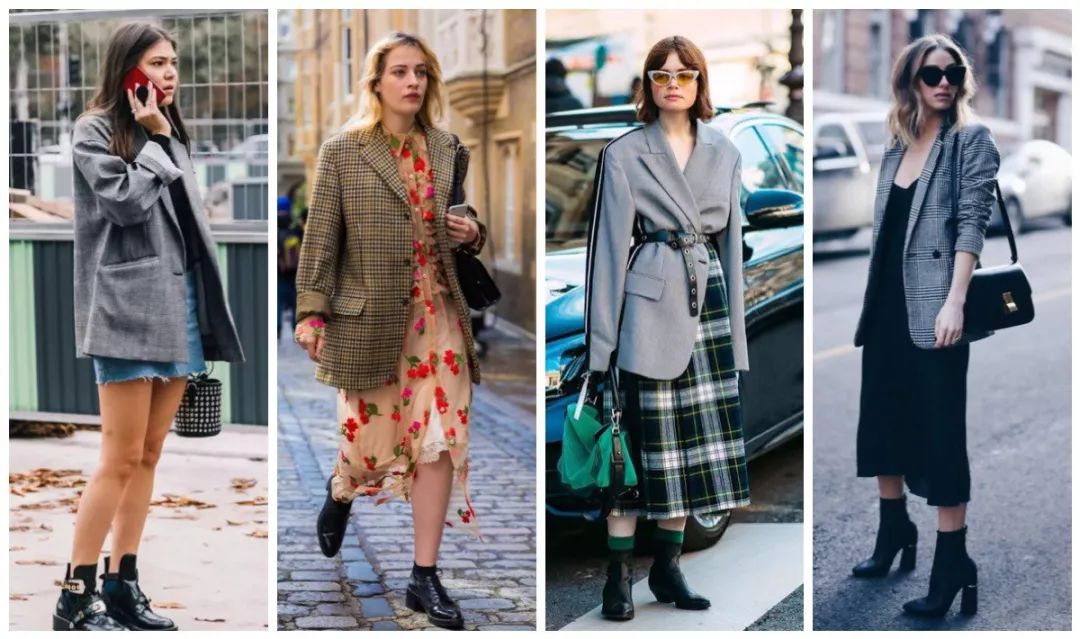像今年特别流行的Oversize廓形外套和短裙就特别配。