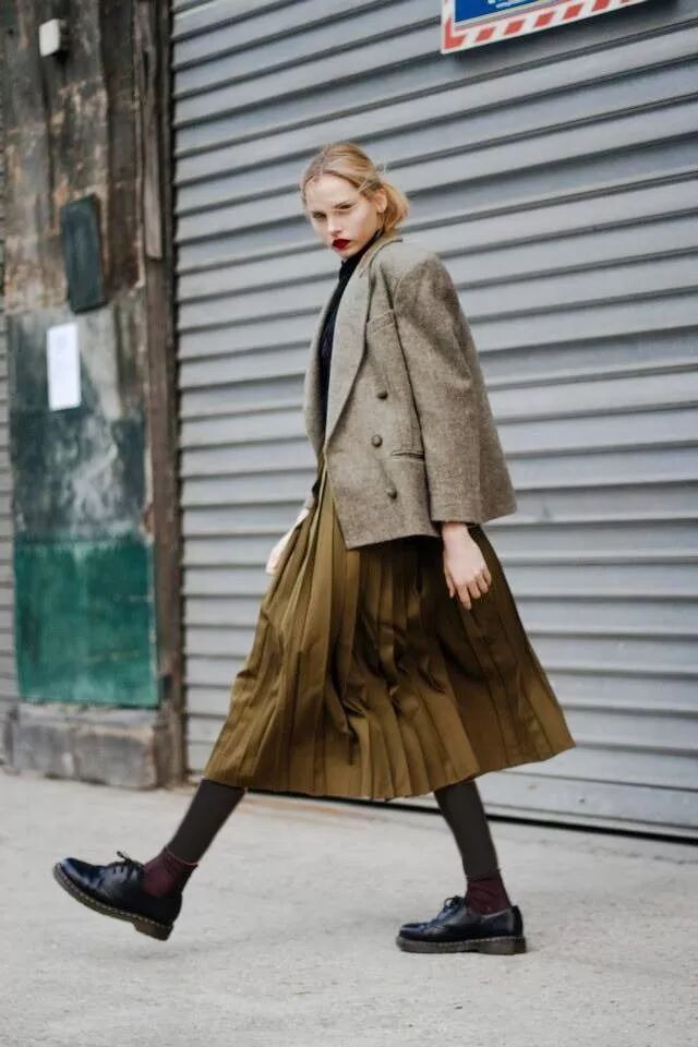 想要吧百褶裙穿得好看,腰线是关键。你可以试着用内搭提高腰线,或者搭配长一点的外套来制造腰线。至于保暖问题,不用担心。一双打底袜或好看的长筒靴就能很好地解决啦~