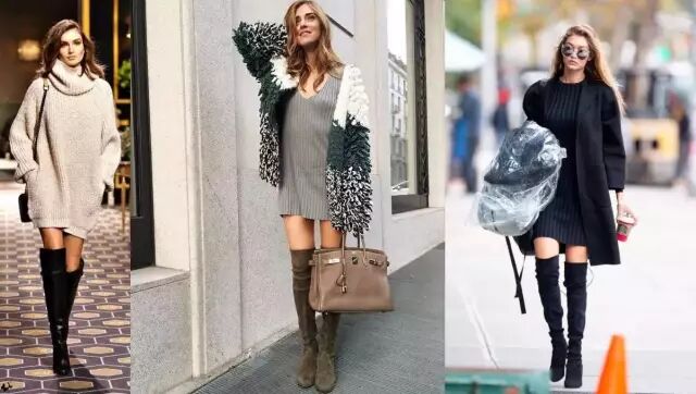 针织裙最容易穿好看的长度有两种,第一种就是长度在膝盖以上,偏短的长度能秀出一双长腿,不会把你的腿55分。对了,选择宽松点的款式也能显腿细。