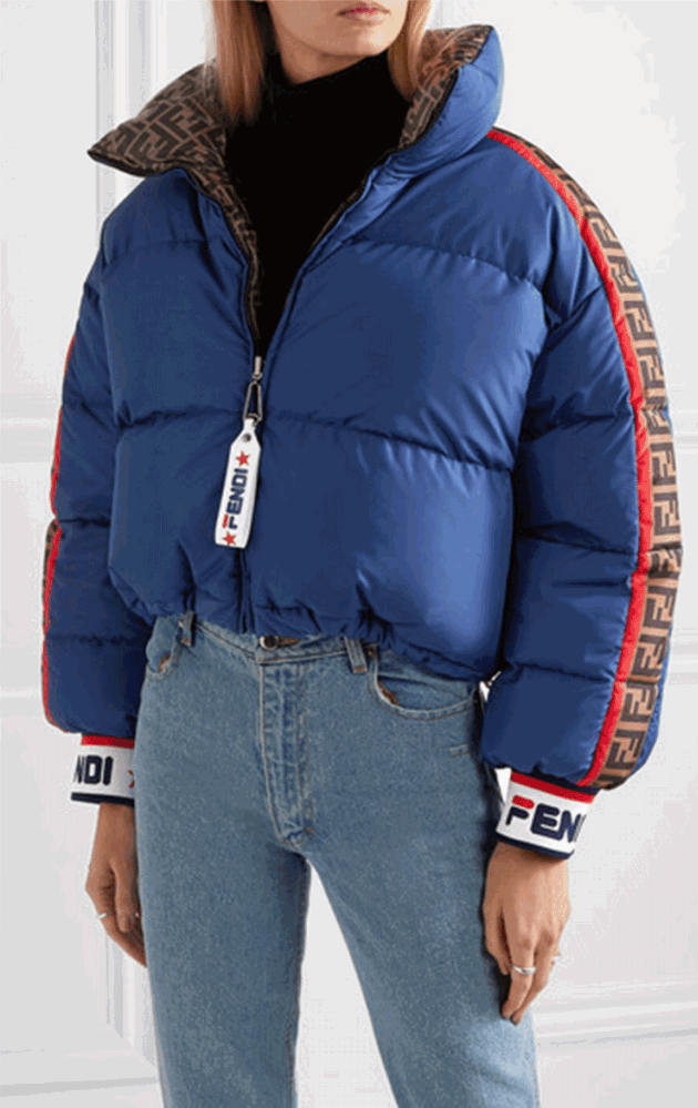 今年Fendi羽绒服的设计倒是挺吸睛的,代购们都在狠刷高俊熙这件可双面穿的fendi老花羽绒服