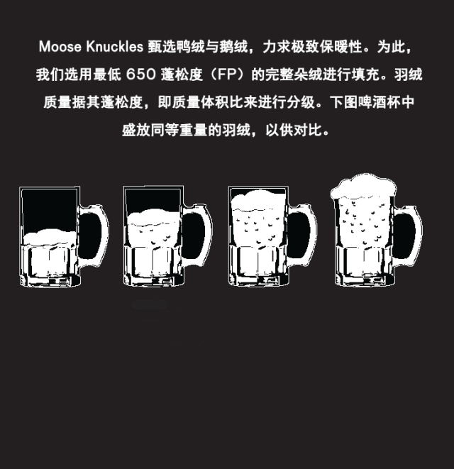 就拿最让人惊喜的一点说,它的填充物是最高级的鹅绒!全部采用!不参合其它那种!而且都是蓬松度平均是600-700FP的!确保好看又保暖,试问怎能不对它折服?