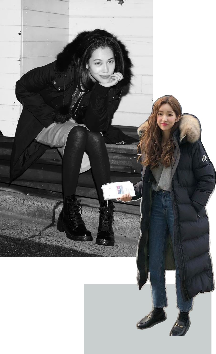 像这种很毁比例的下半身穿法,就这么神奇地被这款羽绒服拯救了,在视觉上一下子拉高了比例。