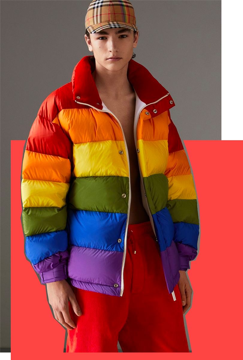 Burberry今年的羽绒服也很抢眼,让你看到了彩虹令人心情明朗。