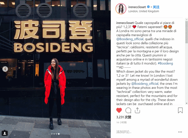 而且,今天我发现,ins上好多人都穿着波司登羽绒服准备跨年呢,看着海外的大家都在穿我国货大牌,还是有点小骄傲呢。