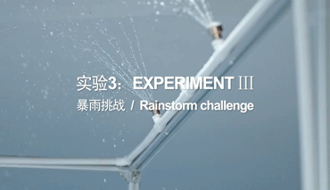 用密集的喷淋头模拟大雨瓢泼的状态,降水量达40mm/h,也就是960mm/d,如果1d(或24h)的降雨量在250mm以上,就已经是特大暴雨了,所以这个降水量是非常大,而且非常凶猛的。