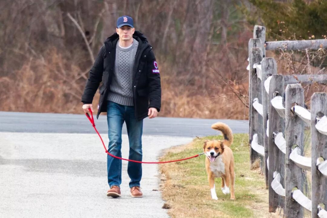 最近有人拍到了美队遛狗,超呆萌有爱!