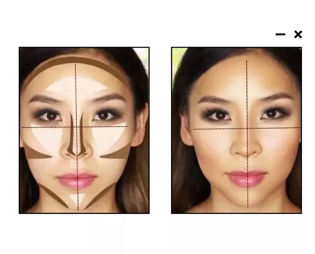 而亚洲妹子希望达到的显脸小,则需要把阴影大面积铺在脸部外圈,这样就能在视觉上把脸部正面的部分面积归进脸部侧面,从而显得脸小。