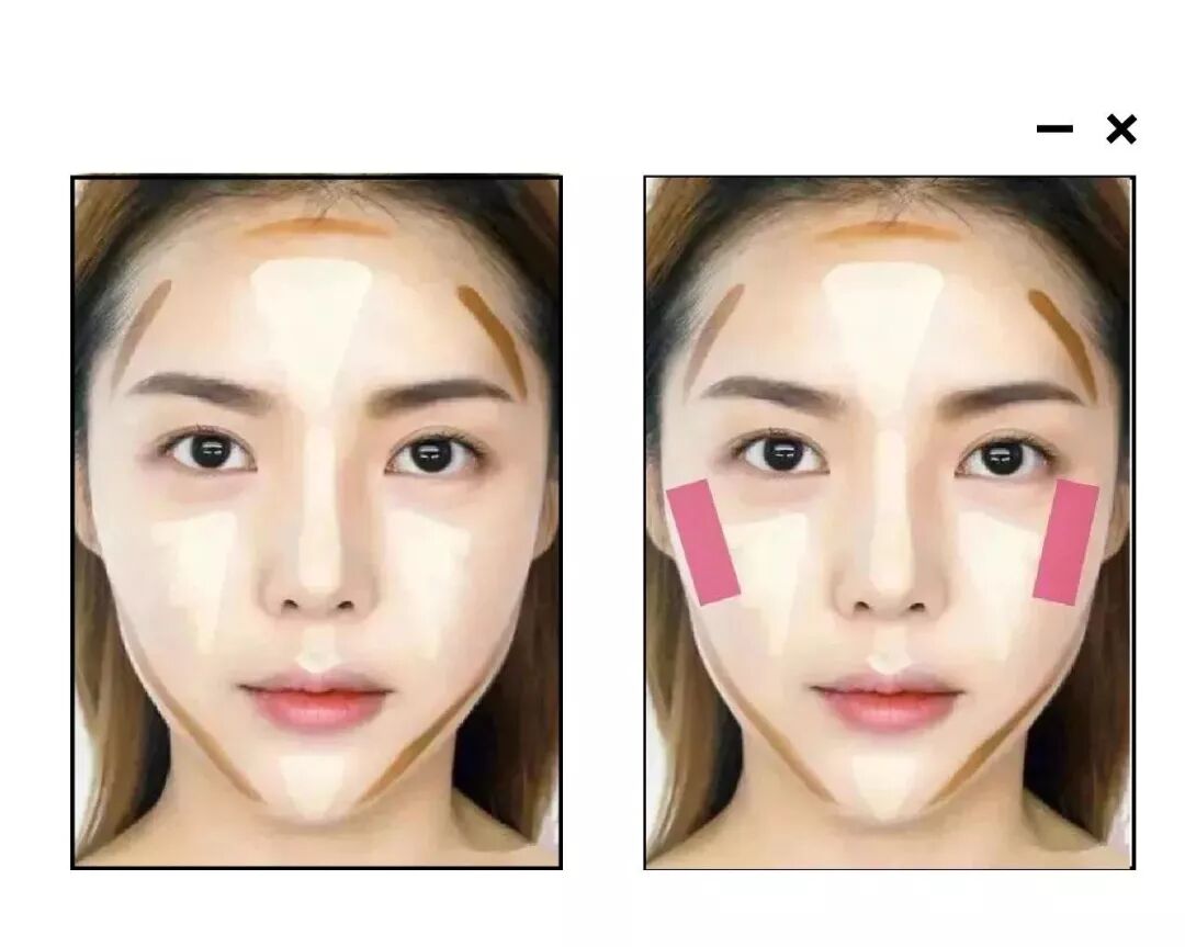 但对于脸宽的女生来说还是不够的,所以桃建议大家按照右边我修改的方案,在修容的基础上进阶添上腮红。