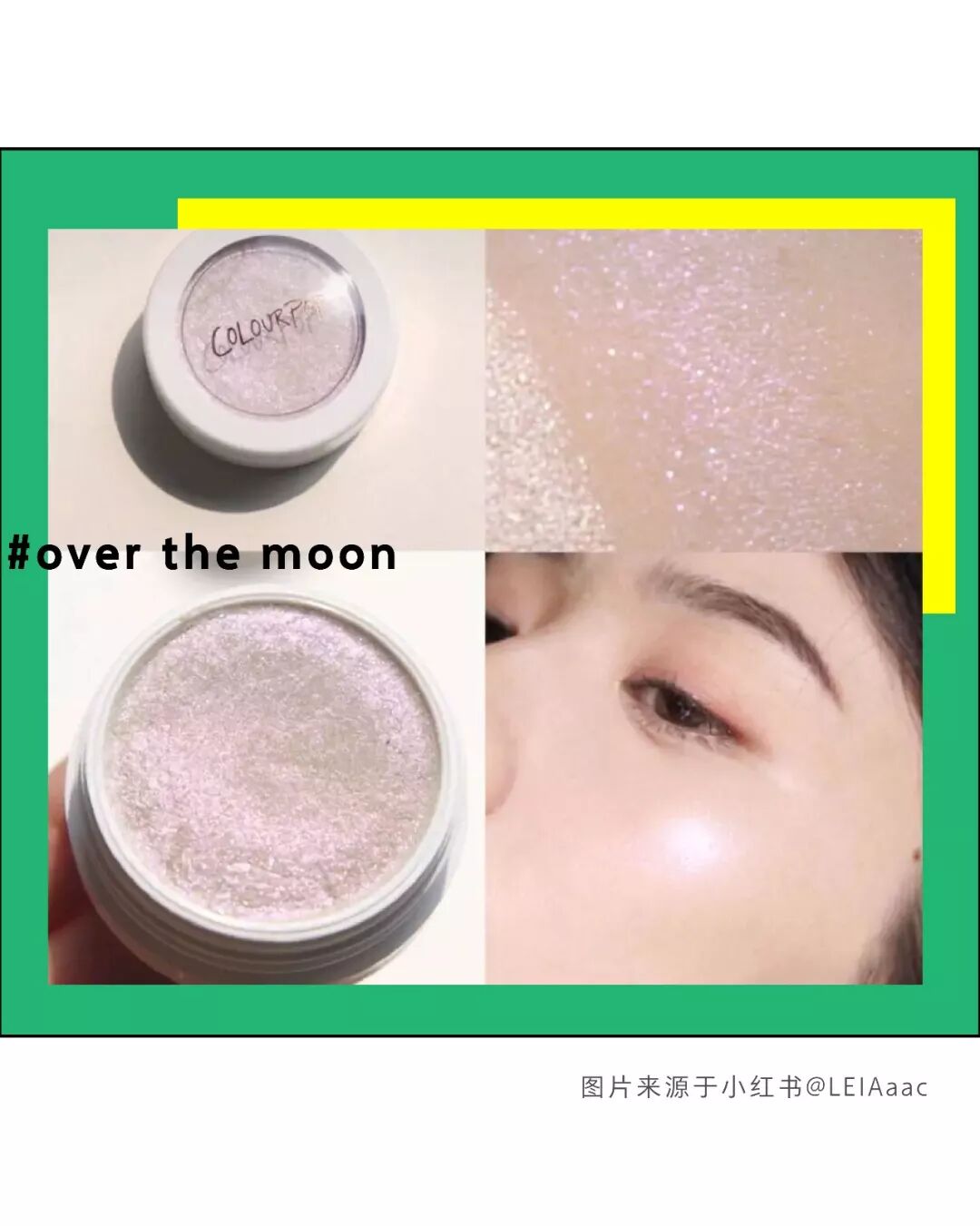 偏光色的#over the moon是系列里的热门色号,也是我日常最喜欢的一款!颜色偏蓝紫,带着存在感的小亮片一闪闪的,涂在颧骨和鼻尖的位置特别的软萌,白皮、黄皮都hold的住!