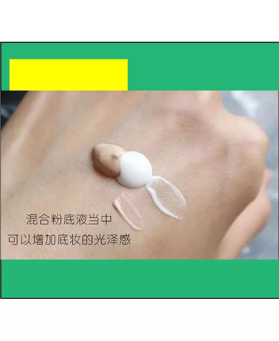 还可以把液体高光混合粉底一起上妆,涂完以后不用再打高光啦,可以节省化妆的时间!