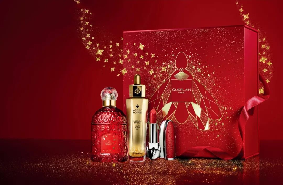 娇兰推出“蜜语新愿,尽绽蜂华”新年礼盒,以黄金复原蜜作为主打产品,包装虽然没有用到猪猪元素,但选择了品牌标志性的蜜蜂装饰。复原蜜的透明瓶身变成了金色瓶身。