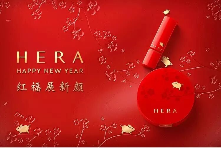 HERA的红福金猪特别版则将优雅的梅花和可爱的小金猪结合一起,两种画风的图案装饰在一起也别有一番风味。
