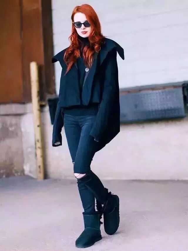 雪地靴的搭配只有一个原则,上松下紧。