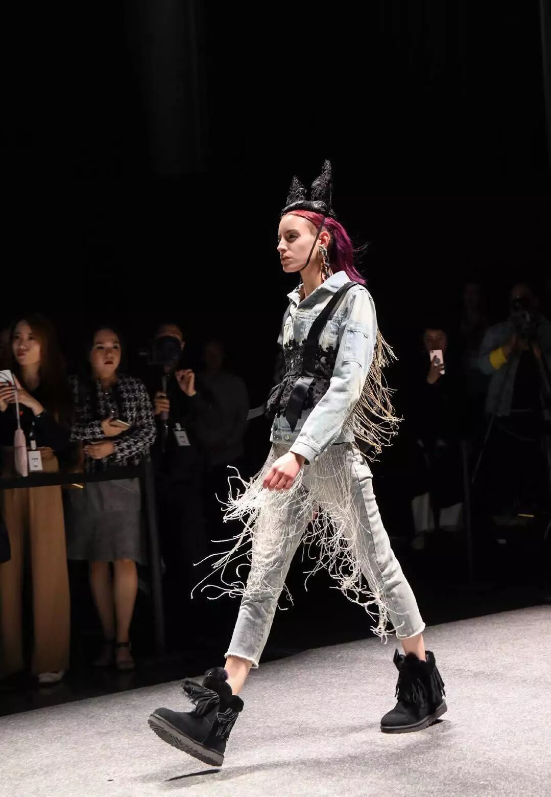 有条件的妹子(抗冻的),那光腿会更好看!或者买一条光腿神器,也很赞哦~凹造型神器!
