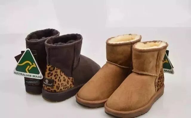 而要区分是不是100%澳洲生产很简单,凡是所有澳洲生产的雪地靴,都会有澳洲制造的认证标志,也就是里面装了一只袋鼠的绿三角(上图绿色那个标签)