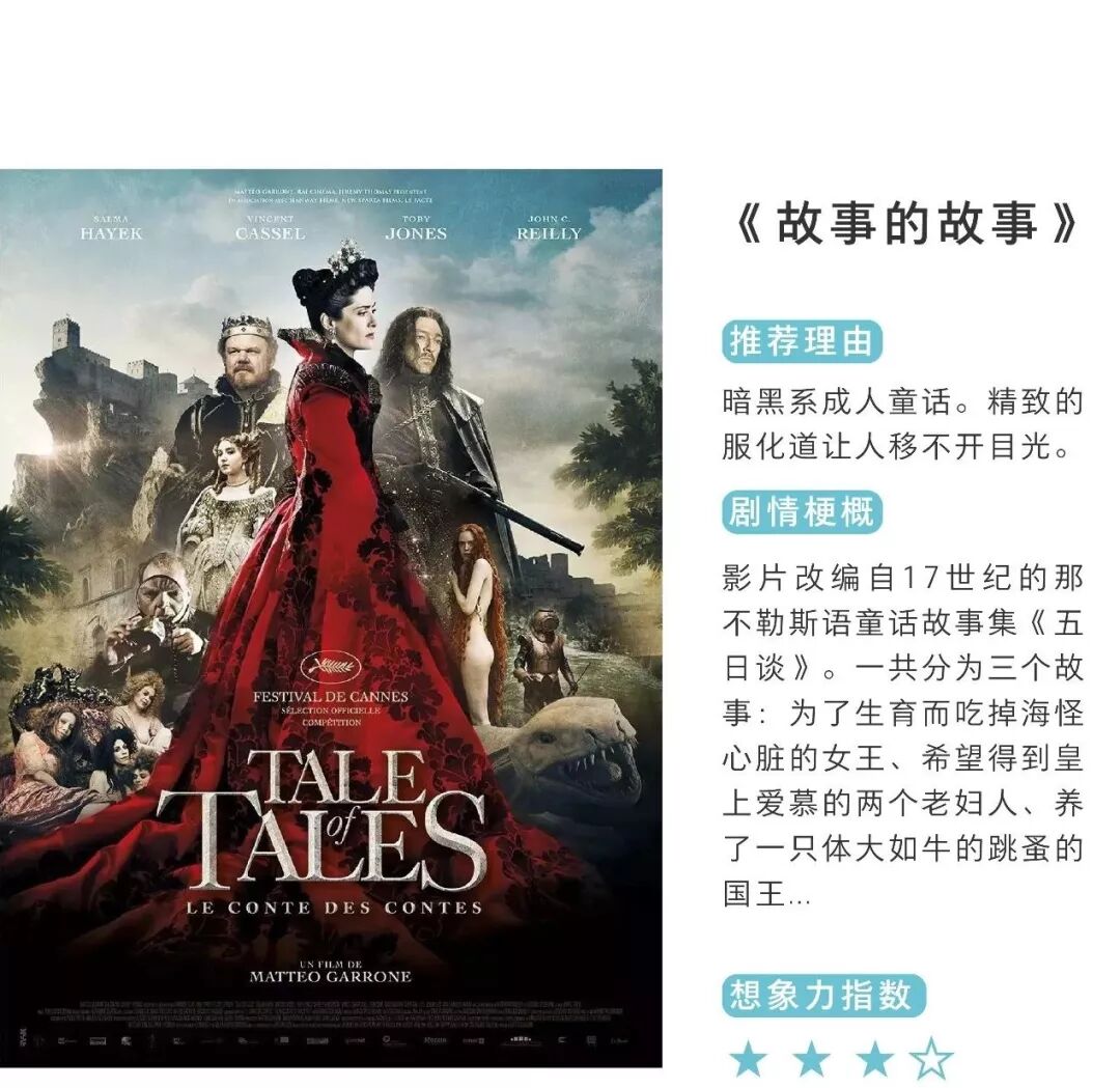 偏暗黑系的成人童话,虽然分为不同的故事,但是每个故事之间都存有联系。看这部电影你会发现那种原汁原味的奇幻气息存在于每一帧画面里。