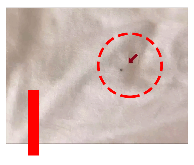 但不好意思,你要失望了,别以为仅售160元的T恤作不了妖?它才是Supreme最可怕的质量黑洞,像下面这种黑点,在不少货上都会出现,品控不处理就算了,还会在污点旁边贴上标签告诉你“这里脏脏噢”~(what?!什么脑回路?)