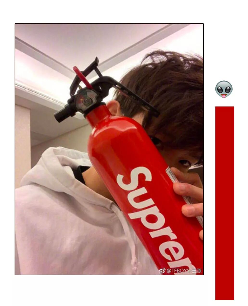 说到Supreme周边,不得不提我们的国民弟弟——王源,他真的是不折不扣的Supreme男孩,爱穿它家衣服不说,还喜欢收罗它家的周边产品,不管是用得上