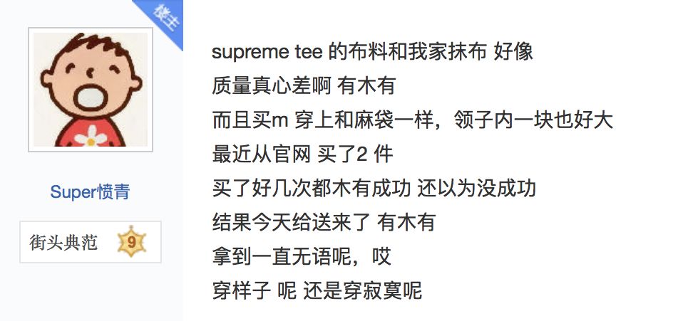 不知道你们买Supreme的时候,有没有遇到这种气人的质量问题?很多网友们倒是跟我一样,失望三连,无力吐槽