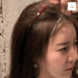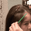 Step2:戴上去之后记得用手指拨自然,如果觉得刘海太过厚重,可以用打薄剪刀在接近发根的地方剪个几刀,最后记得用平板夹夹出漂亮的弧度;