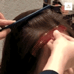 Step2:沿着发际线从上至下,用梳子协助修剪碎发的边缘。