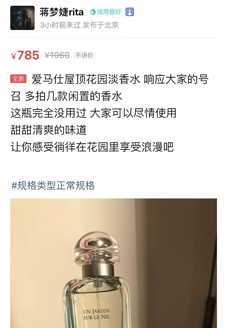 蒋梦婕标写着是爱马仕的屋顶花园,但是从图上来看,这瓶其实是爱马仕的尼罗河香水系列(也就是她自己并不知道自己卖的是什么系列),定价785,全球范围内比价见右图。