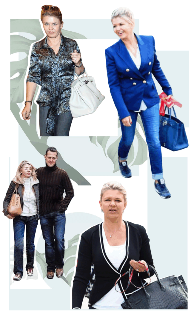 其实在舒马赫发生事故之前,我们还能经常看见那位背着各种爱马仕铂金包的“车王妻子”。