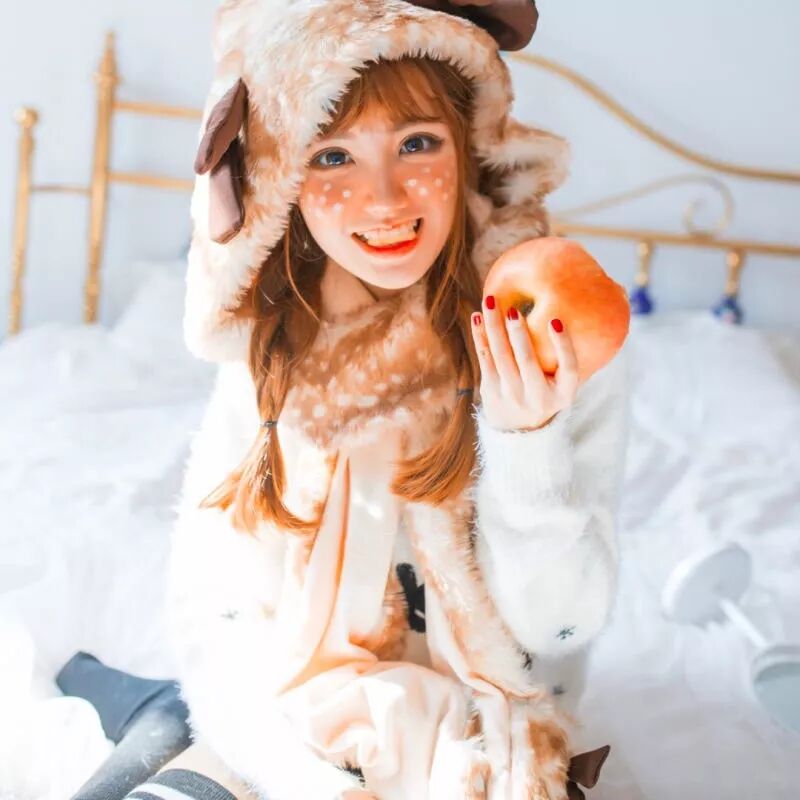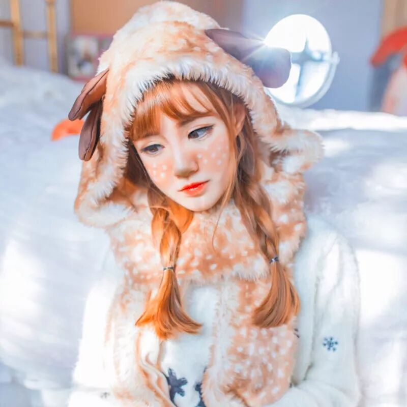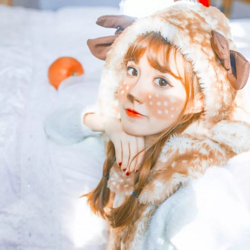 美丽说用户@毛栗子哼宝:#百变妆容# 圣诞小鹿妆 | 马上圣诞节啦~画个小鹿妆暖暖过圣诞~ 鼻头用棕色的眼影 脸颊我用的是深色修容打底然后白色记号笔画斑点~ 口红是阿玛尼黑管唇釉500~