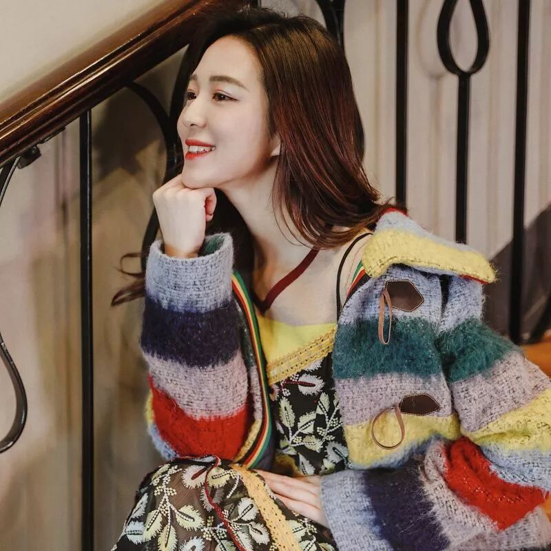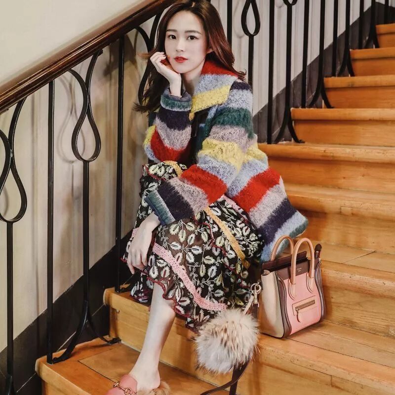 美丽说用户Cheryl梓淋:圣诞月的欧风彩虹蛋糕少女穿搭攻略彩虹大衣蛋糕裙条纹针织衫