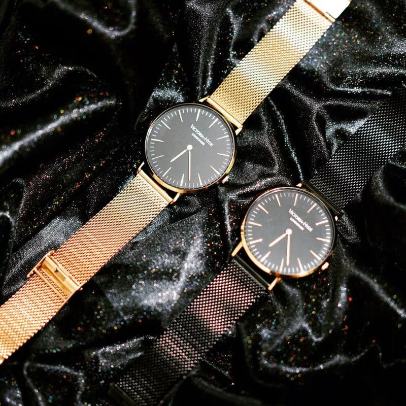 美丽说用户@自由行走的猫头樱:平安夜小礼物VHLondon 黑表盘配玫瑰金腕带的【黑曜】和黑表盘黑腕带的【暮色】