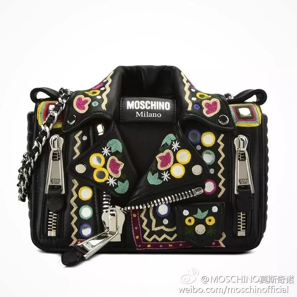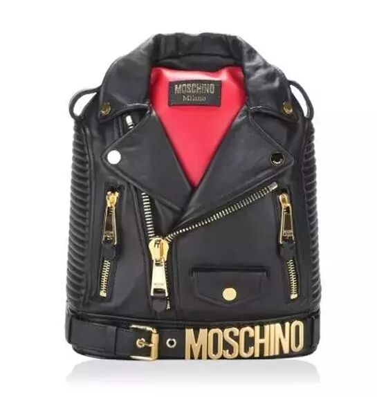 其实,除了这些乍一看要深吸一口气才能背出门的包之外,Moschino还出过很多红遍大江南北的包包哟,比如最、最、最经典的机车包——Jeremy用Moschino标志性的机车服做成了包款,每个口袋都可以拉开来放点小玩意,有趣又很合理,在FARFETCH上的售价是12428元起。