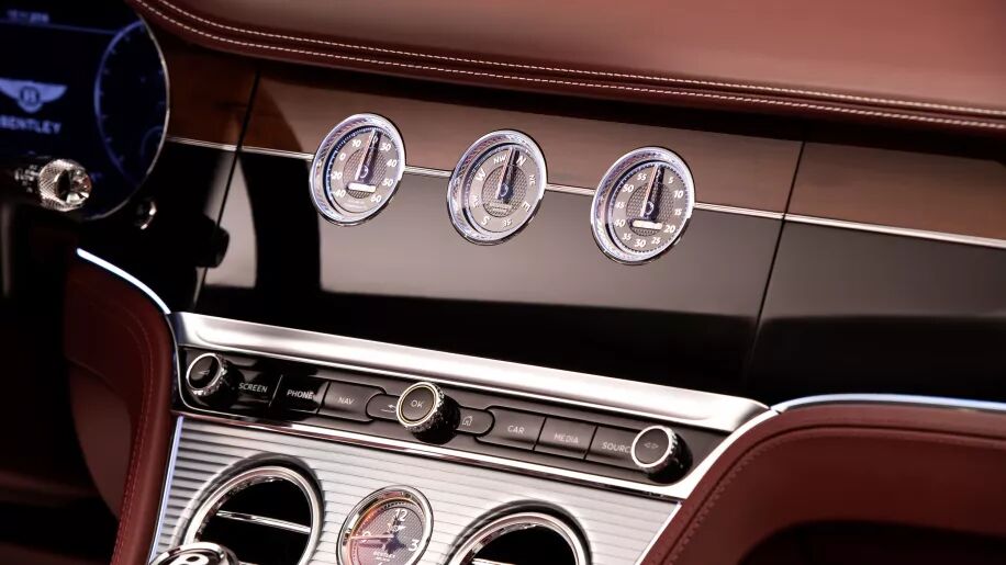 “宾利三面翻转中控面板”有数字式和模拟显示,同样的出现在欧陆GT敞篷版上。进入车内,仪表板中央好像没有屏幕一样,而随着车辆启动,仪表板中央面板随即翻转,除了能够展示宾利有史以来最大的、面积达12.3英寸的多媒体触控屏之外,还保留着经典英国豪华轿车特有的三表盘设计。